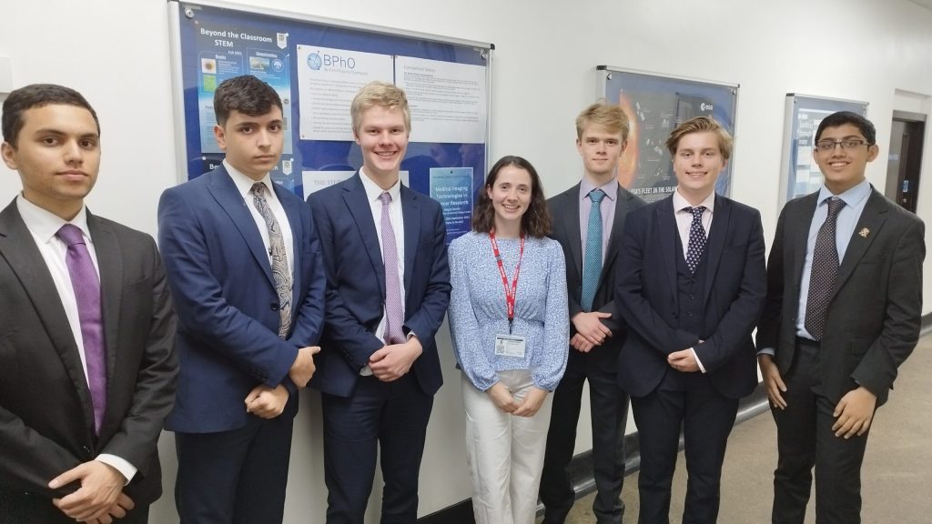 Megan visited the St Albans School on the 29th September 2023 to give a seminar on her research to A-Level students. She was invited by the Stephen Hawking Society, a student-led group inviting academics to talk on a wide range of science-related topics in the fields of physics, chemistry and biology. Her presentation was titled “Medical Imaging Technologies in Cancer Research”, which showcased the capabilities of super-resolution ultrasound and functional MRI to monitor breast tumour response to radiotherapy. The presentation was followed by a lively Q&A session, where the students asked some wonderful and impressive questions which showed their engagement in the presentation. Following the seminar, the Stephen Hawking Society committee gave a tour of the school.